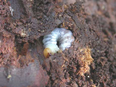 お尻が大きく特徴のある体型をしているネブトの幼虫 |