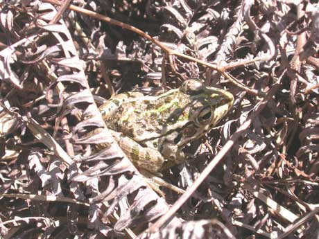 そうそう、山の上の方で水も無さそうな場所で、枯葉に埋もれてトノサマガエル(でいいかな?)が居ました。