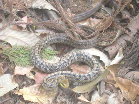 あとここではヘビも見かけました。 最初見た時、シマヘビかと思ったのですが、写真はちょっとマダラっぽく写ってるし