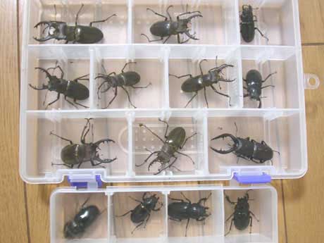 成果は、ミヤマ♂7♀6、ノコ♂1、カブト♂1♀4 でした~!