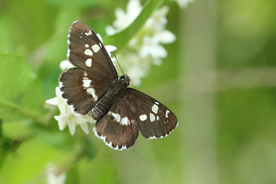 お目当てのウラゴとは違うダイミョウセセリ、イボタのそばのウツギで撮ることができました。